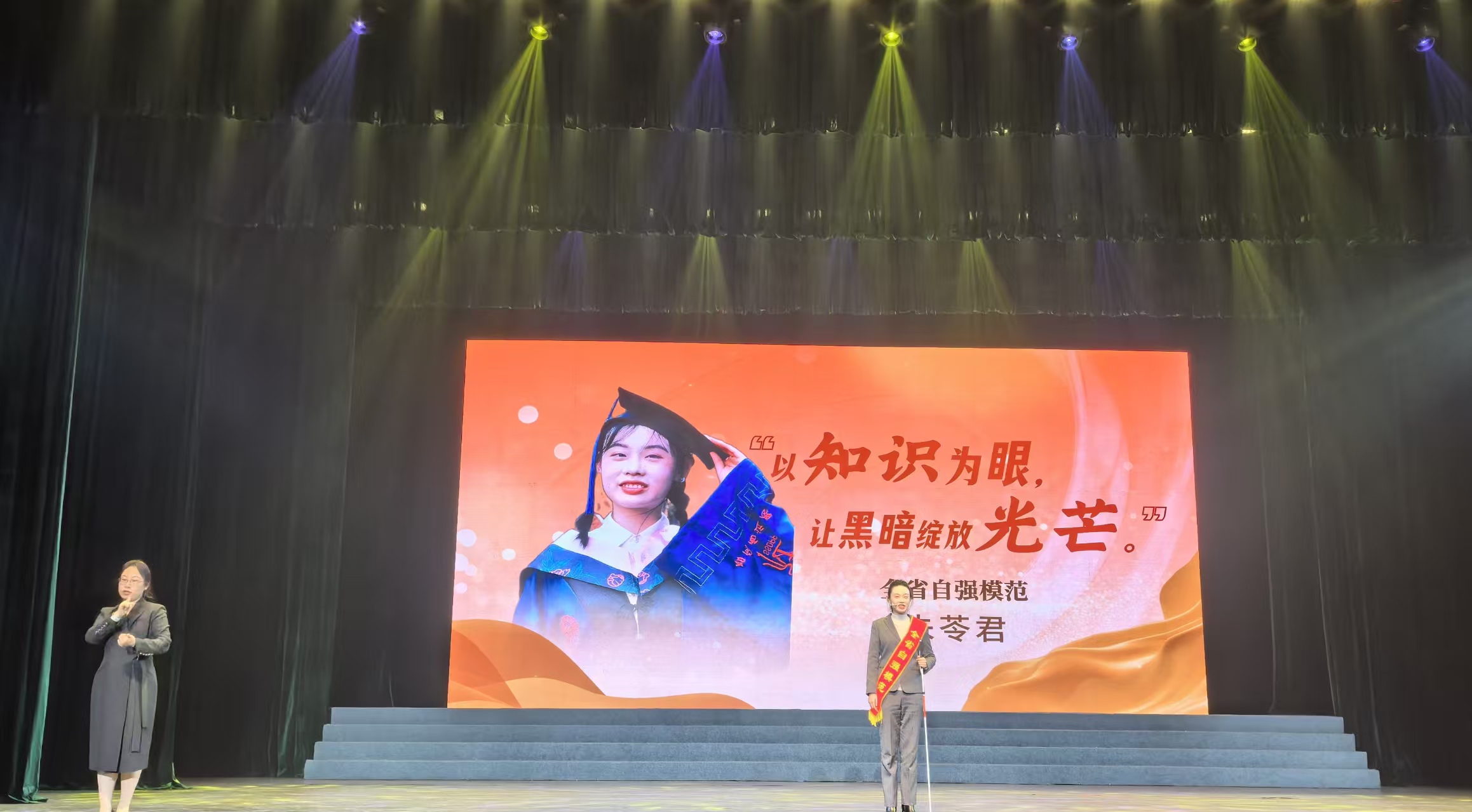 报告会上,6位自强模范与助残模范代表先后登台,用质朴的语言、滚烫的初心,讲述着逆境中奋起、奉献中闪光的人生故事。先天失明的无锡惠爱实验学校盲人教师朱苓君,在黑暗中摸索出育人之路,用声音为学生搭建起通往世界的桥梁;致力于打破沟通壁垒的杨阳,以科技为翼,让听障群体 “听见” 世界的精彩…… 每一个故事都饱含力量,每一段经历都令人动容。