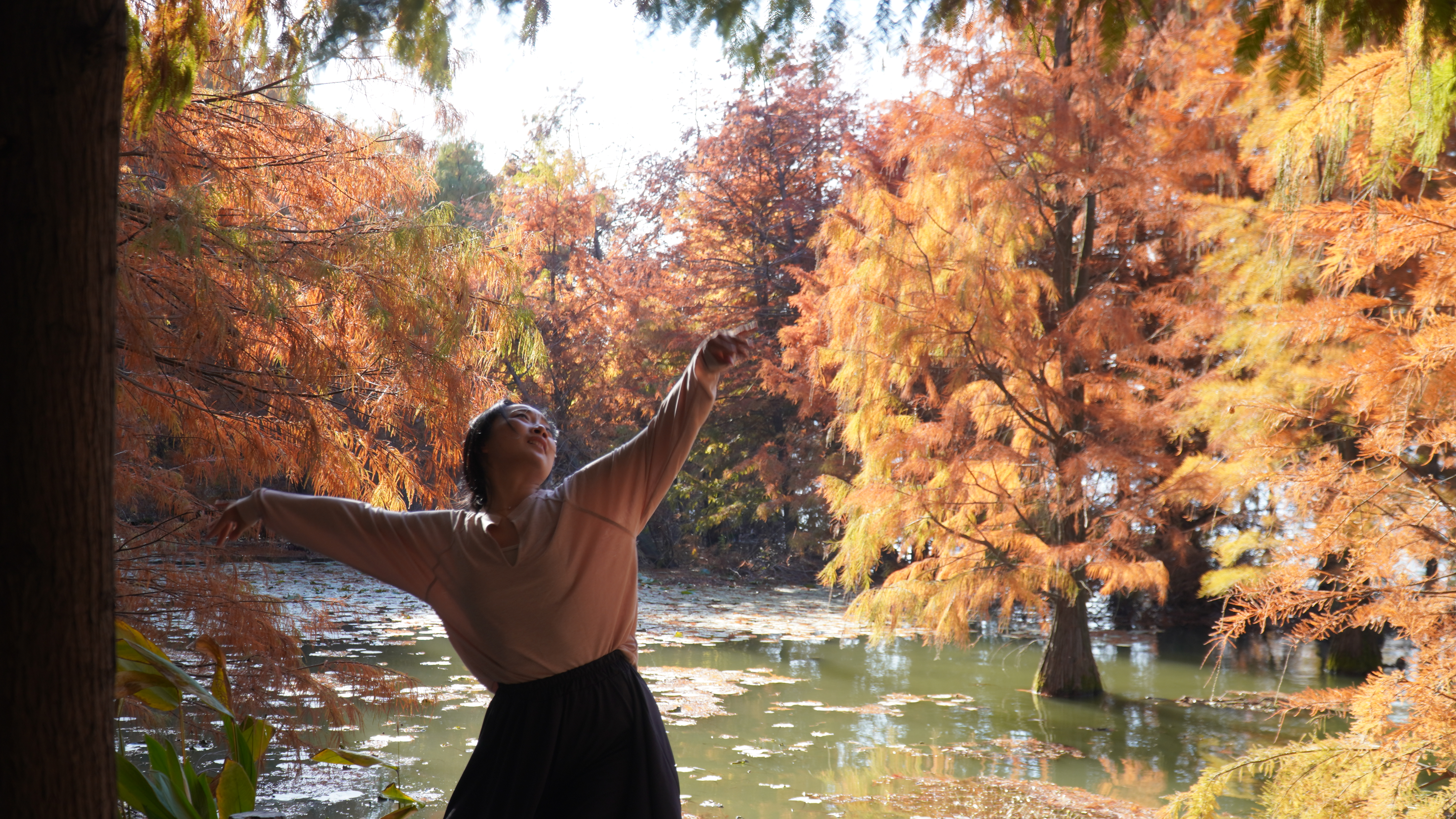 曼妙舞姿与美丽秋景碰撞出独特魅力,自然也吸引了一众摄影爱好者驻足打卡。已退休的李阿姨一路拿着相机追随乔女士,快门声不断:“她们跳得太有感染力了!这样美景与人文交融的瞬间,值得被好好记录下来。”