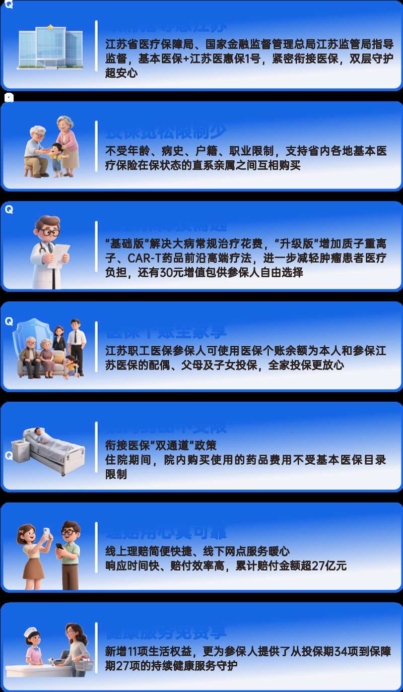“江苏医惠保1号”用实实在在的行动,汇聚万千家庭的守望相助,共同织密一张“病有所医、医有所保”的坚实保障网。