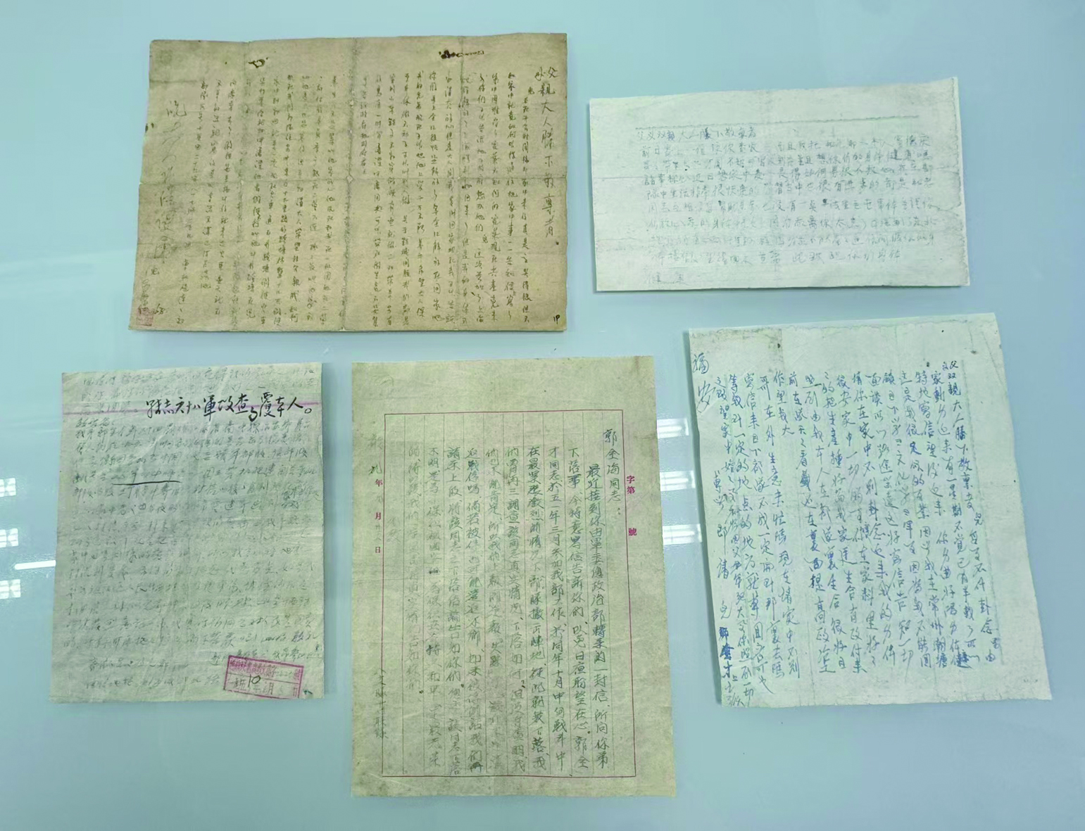 修复后的家书及部队给郭全才家人的回信。 蒋丽 摄
