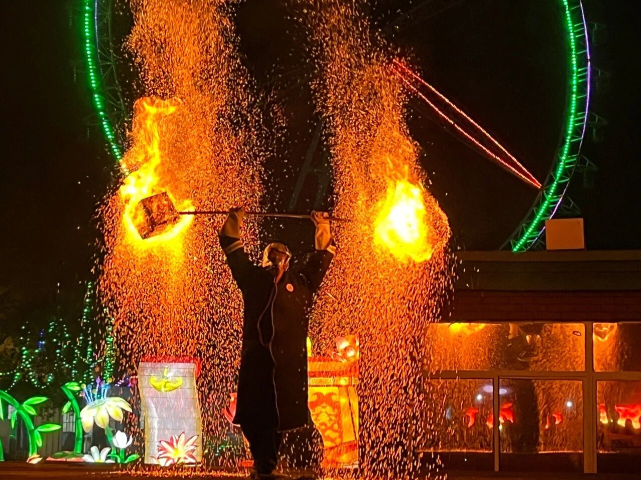 值得一提的是,夜幕下还有精彩的非遗火壶演出和冷焰火烟花瀑布,让假日的黑夜越发绚烂。多位游客表示,来这一趟,孩子玩得特别满足,嚷着下次还要来。