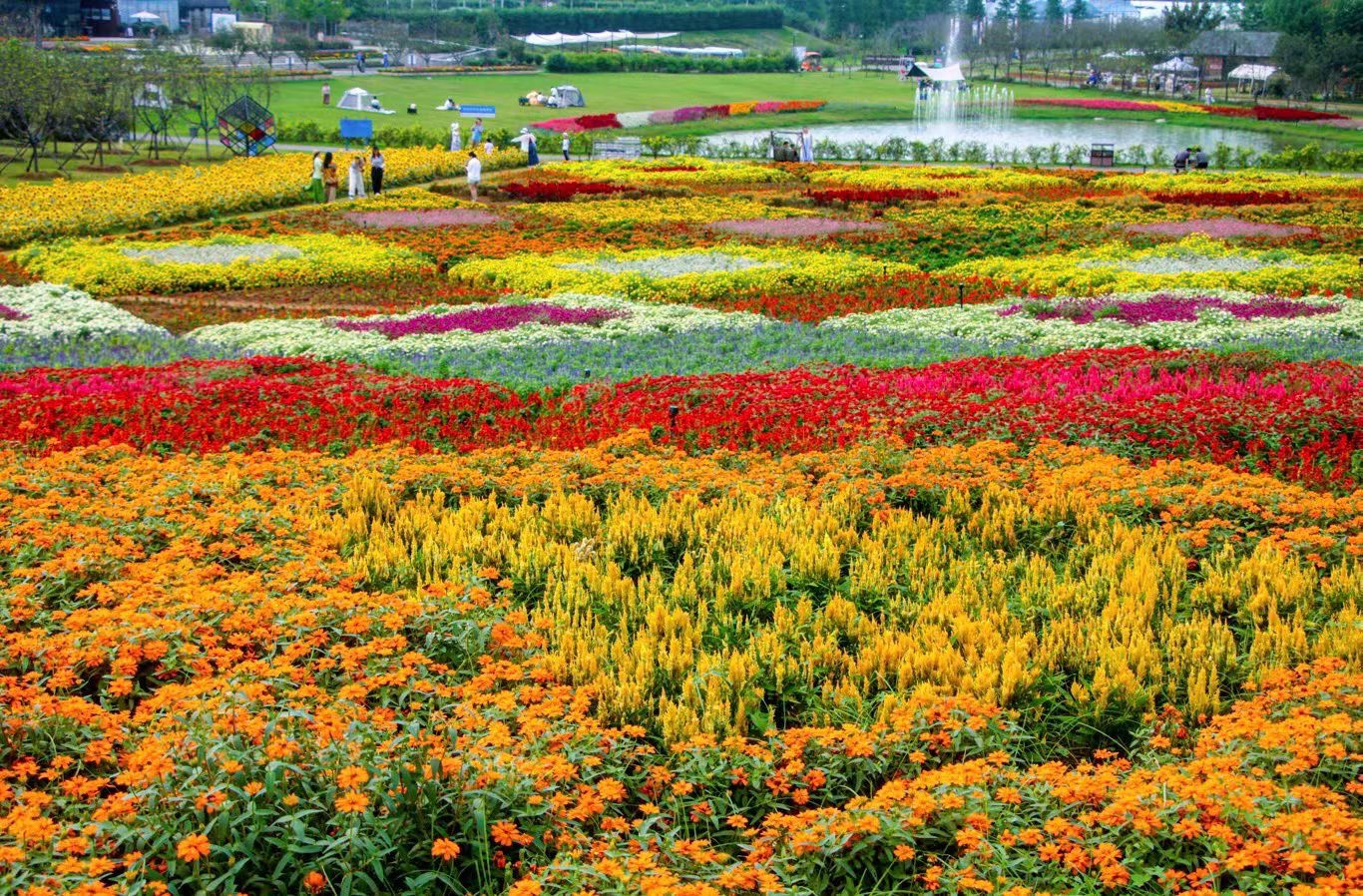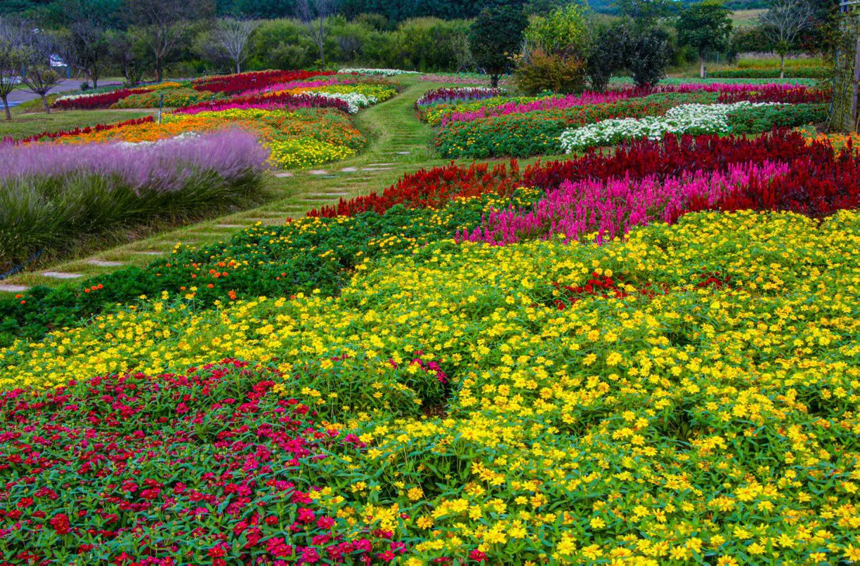 “我们今年的多个花田各有特色,其中,滨湖花田位于园区花田核心区,由大小不一的三个花坡组成。富阳花田位于滨湖花田北侧,由4大片向日葵组成。七彩花田紧邻中心水池,与丰盛花田构成连绵起伏的鲜花波浪,繁复和单色在一片花田里形成视觉冲击,鲜花美景将在这个秋季展现。”伏热花海相关负责人表示,还有由万寿菊、鸡冠花、千日红、墨西哥鼠尾草和粉黛乱子草组成的丰盛花田;由花园菊、地肤草、波斯菊、向日葵组成的半夏花田。“值得一提的是,今年我们还加入了几何图形设计,由5片几何切割的花田组成‘星空花田’,惊艳游客的双眼。”