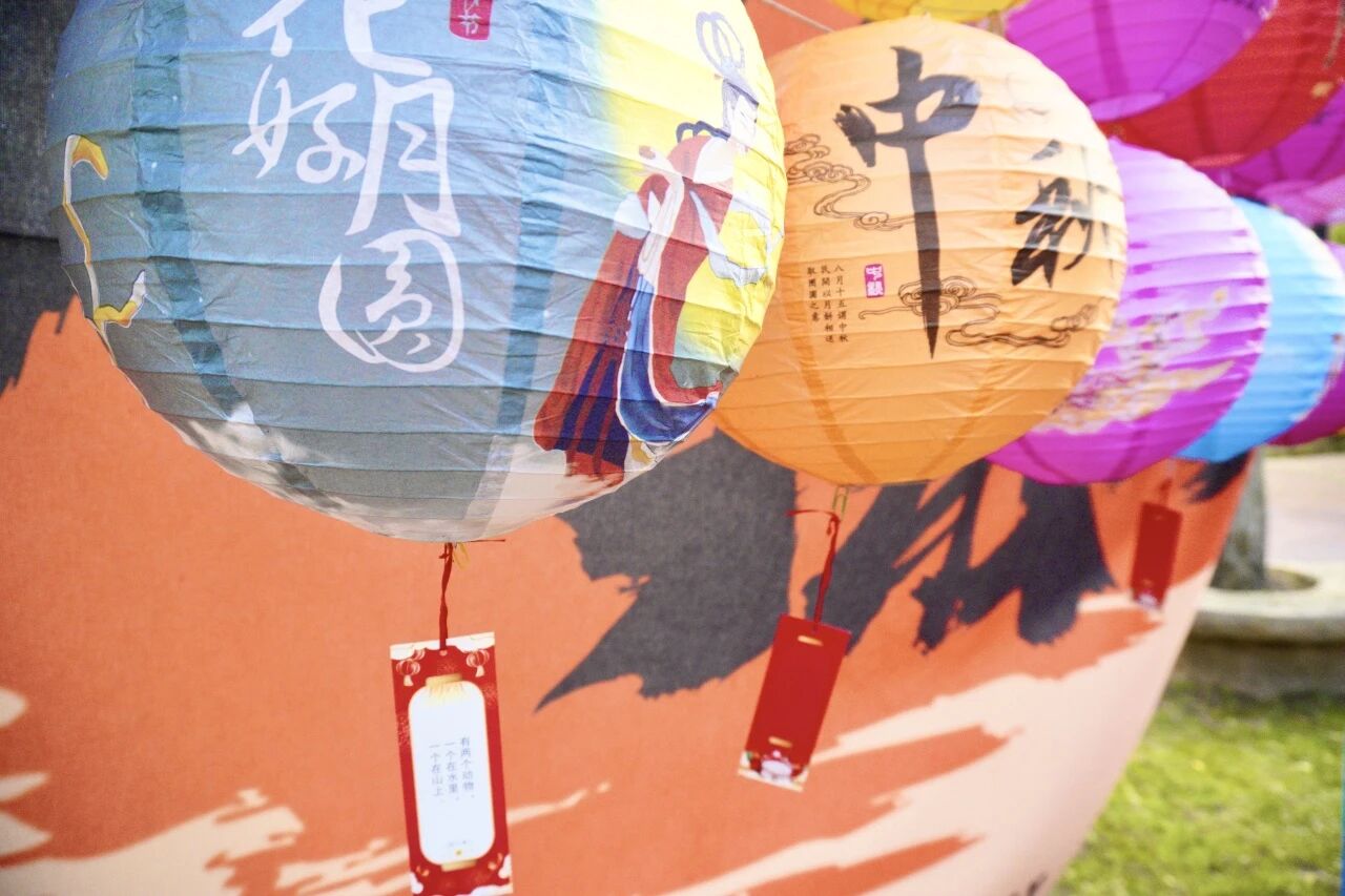 傍晚时分,香海琴枫的湖边还为游客备好各式精美荷灯,游客可以亲手写下心愿与思念将荷灯放入水中月色洒在湖面,一盏盏荷灯随波摇曳,展示着中秋团圆的文化魅力。