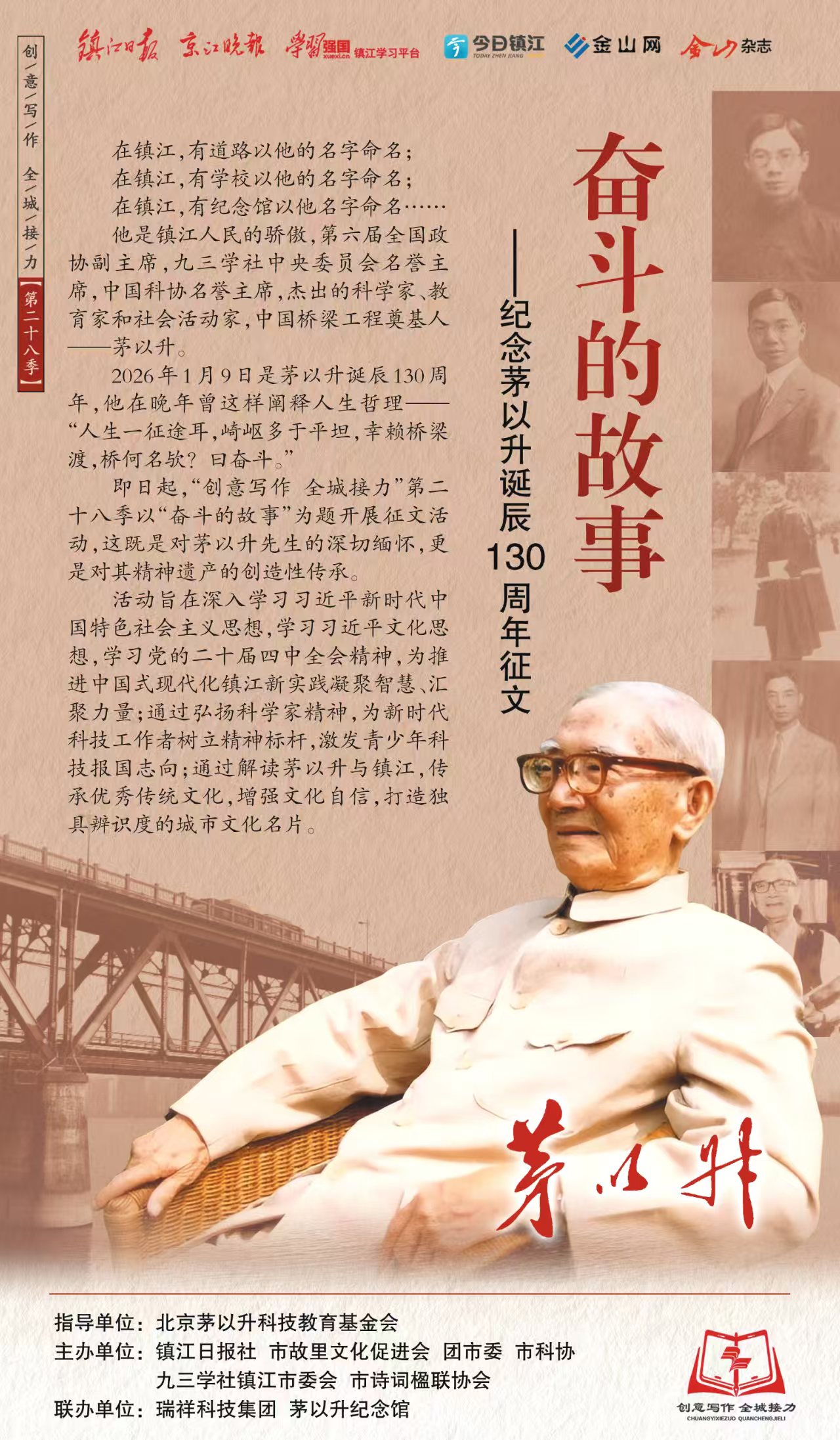 让我们以此次诞辰纪念为契机,进一步挖掘茅以升文化资源,讲好“奋斗的故事”,打造具有全国影响力的城市文化品牌。让“茅以升”不再只是一个名字,而是一种信仰、一种力量、一种生活方式。