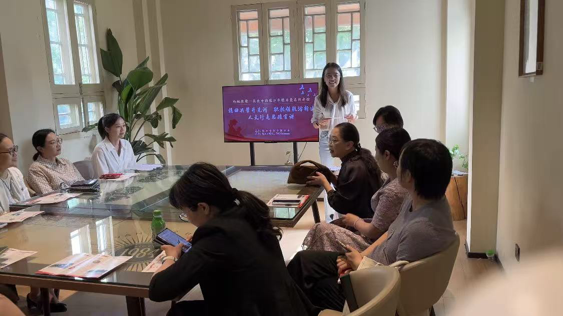 随后,巾帼宣讲员、市委党校胡思慧老师又带来严忠婉的事迹分享。1930 年,12 岁的严忠婉进入唐儒箴创办的私立镇江女子职业学校学习,正是这所学校“注重实践、倡导自立”的办学理念,为她后来投身蚕桑事业、成为行业专家埋下伏笔。“唐儒箴是‘开创者’,严忠婉是‘传承者’,两人的故事因女子职业教育紧密相连,共同谱写了镇江女性赋能产业发展的佳话。”胡思慧老师的解读,让现场嘉宾对“传承”二字有了更深切的理解。