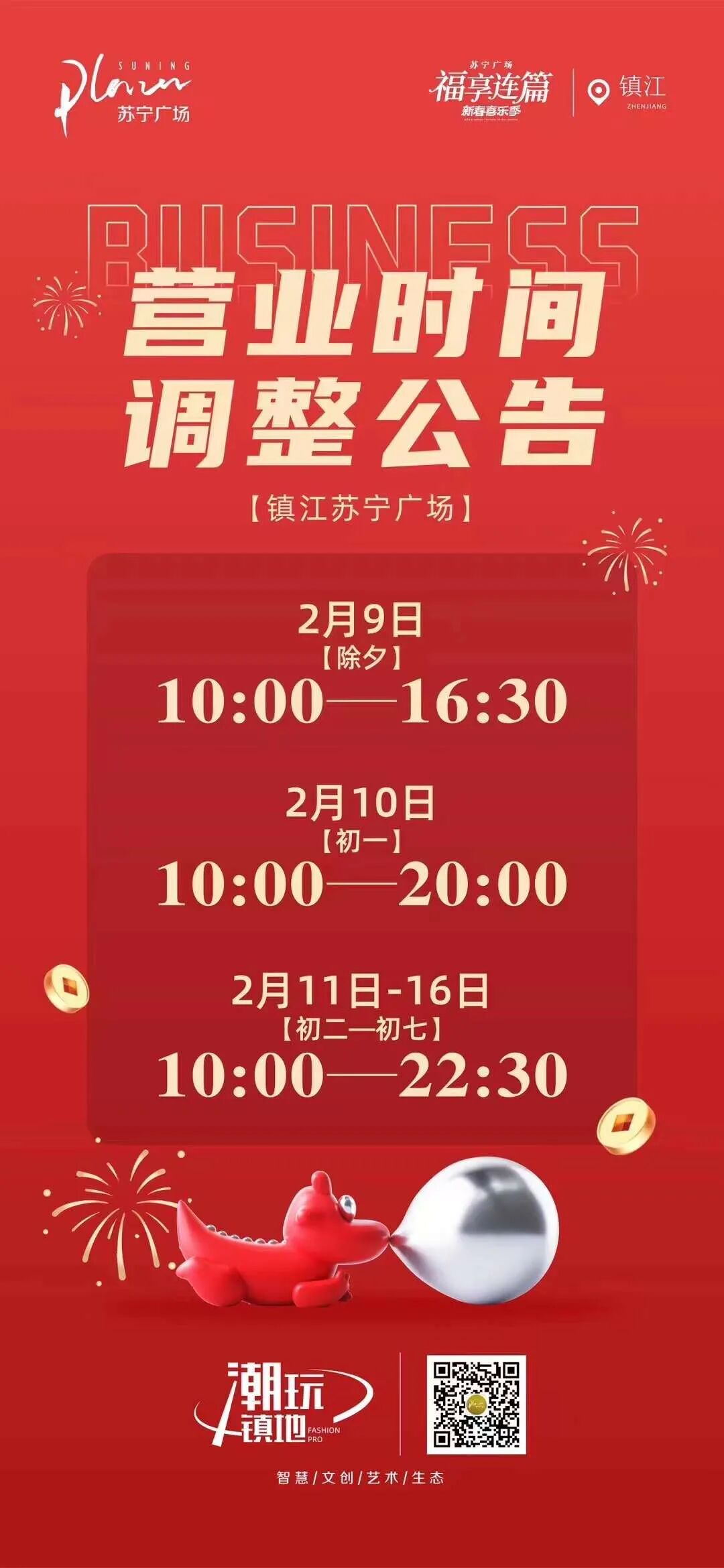 除夕营业到18:00,其他时间不变
