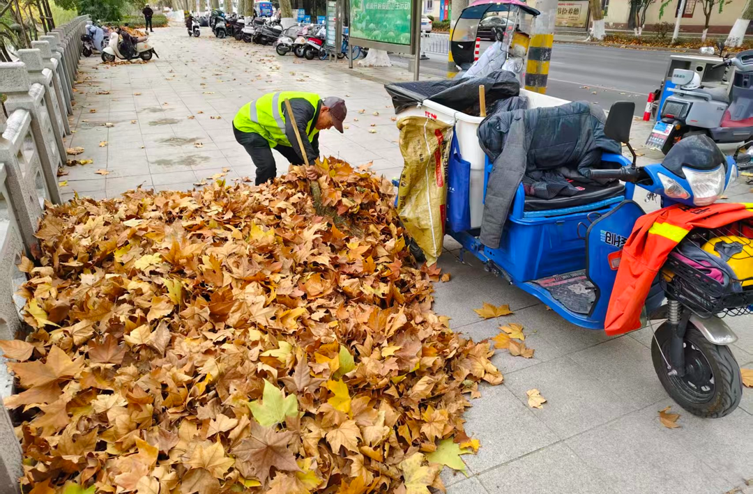 今日镇江讯(华剑 张秋琴 姜萍)进入大雪节气后,温度也慢慢地降了下来,一夜寒风吹过,辖区道路两侧的梧树飘落了大量树叶,落叶景象为街道增添了几分诗意,却也给环卫工人们带来较大的清扫压力。为应对“落叶季”的到来,我市城管部门环卫工人坚守岗位、辛勤劳动,用实际行动为城市环境的干净整洁贡献着自己的力量。