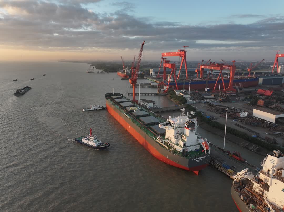 “该船型主机达国际最新排放标准和能效标准,采用“碳捕集”技术手段,能耗和碳排放大幅降低,受到海外客户青睐。”江苏新韩通船舶重工有限公司副总经理杜亮介绍,凭借产品的技术优势,企业前三季度销售同比增长10%,圆满完成了既定目标任务。今年在春节前还计划有一艘31万的超大型油轮出坞作业,目前在手订单已排至2029年二季度。