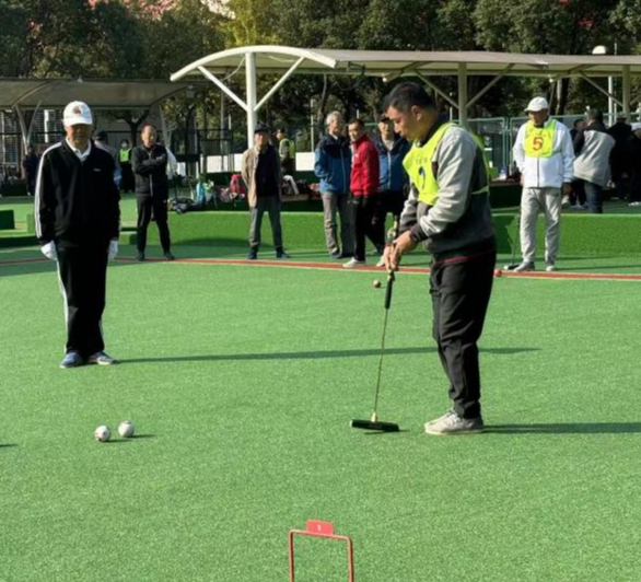 随着一声清脆的锣响,比赛正式拉开帷幕。参赛老同志手持球杆,弯腰击球,动作精准而沉稳,展现出银发健儿充沛的活力和良好的精神风貌。来自全市各地、各单位的17支代表队经过角逐,丹阳市二队凭借出色的表现脱颖而出,荣获第一名,润州区代表队、丹阳市一队分获二、三名。