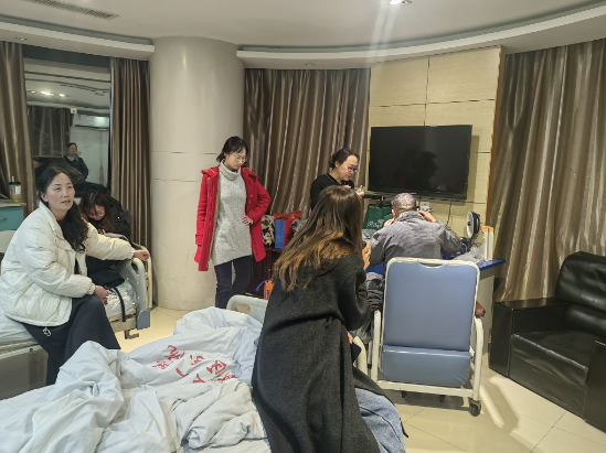 下午四点半我们在小叔叔家简单吃过晚饭,然后去医院给大叔叔送晚饭。餐后,大家一起闲聊开来,由于大叔叔身体状况逐步稳定向好,大家都是有说有笑,气氛还是十分热烈。而后一帮女眷去电影院看电影。留下三人在医院陪伴大叔叔打发时间。我们的陪伴,亲情的互联互通,大叔叔很开心。大家在一起的热闹和节日带来的喜庆,没有因为在医院而冷淡。