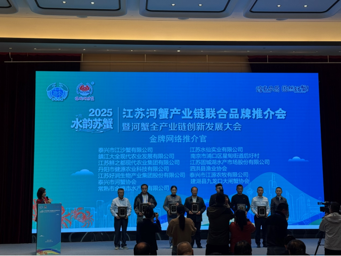 今日镇江讯(卢德胤 记者 周迎)日前,2025“水韵苏蟹”江苏河蟹产业链联合品牌推介会暨河蟹全产业链创新发展大会在南京高淳区举办。我市6家河蟹养殖单位参展,荣获金牌网络推介官、最佳生态养殖基地奖、十大品牌奖、最佳口感奖、优质口感奖等奖项。