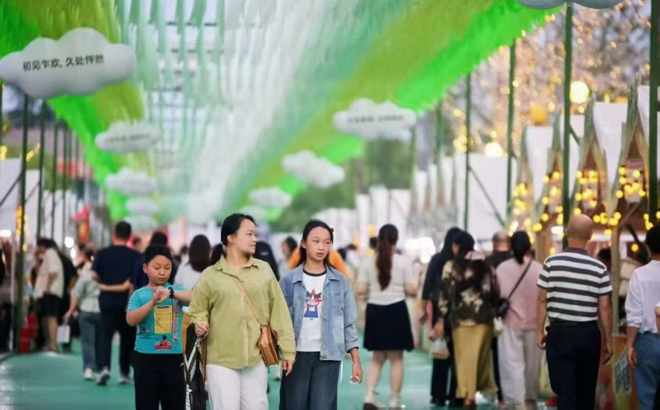 近100个特色摊位的烟火市集里,特色小吃、精美文创等各有吸引力。每晚7时,“超级夜”文艺演出准时开启,摇滚、民谣、戏曲轮番登场,现场氛围热烈。