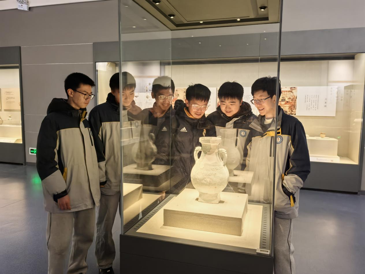 在镇江博物馆文物展厅里,市三中九(9)班40余名学生开启了一场参观学习之旅。这座艺术殿堂中的珍宝,闪烁着中华民族的智慧和文明,展示着古城镇江历史发展的足迹。同学们认真观看了这些承载着中华民族丰富记忆的历史文物。