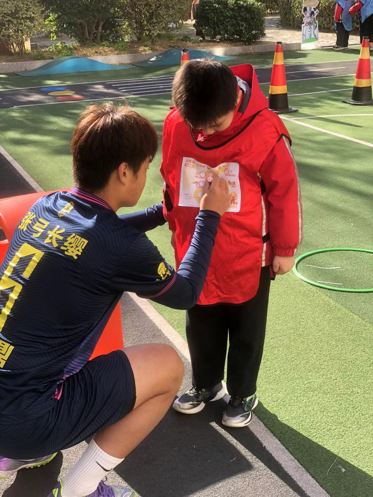 值得一提的是,四位“镇超”京口区队球员全程参与互动,亲自示范动作、带领孩子们闯关,激发幼儿对足球运动的兴趣与热情。活动现场气氛热烈,孩子们在“足球手工坊”中发挥创意进行足球彩绘,球员们为他们颁发礼品并合影留念,将整场活动推向高潮。