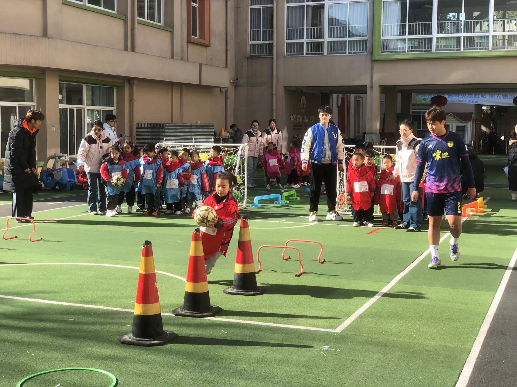今日镇江讯(邵珊珊 记者 景泊)11月26日,由京口区文体旅局主办、镇江市江滨幼儿园承办的“快乐足球,伴我成长”足球公益行活动在江滨幼儿园欢乐举行。本次活动特别邀请到近期在“镇超”联赛中表现亮眼的京口区队球员张弓长缨、项宇航、孟超凡、张怡豪四位嘉宾走进校园,与江滨幼儿园的幼儿们共同开展了一场趣味盎然、互动十足的足球嘉年华。