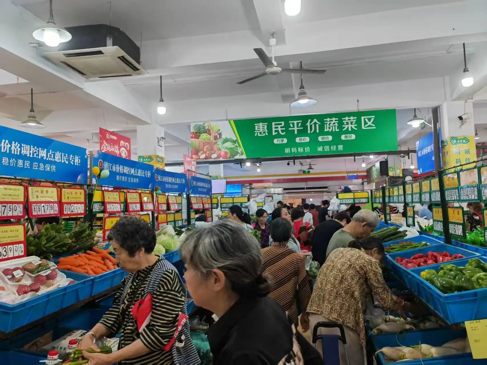 价格调控实体网点开展“惠民”专项消费活动。“双节”期间,镇江市发改委价格调控网点在日常优惠供应基础上加码惠民,推出丰富多彩的特色活动。永辉超市推出100多个品规商品按采购价毛利率10%~15%让利顾客促销活动。生鲜消费助农开展特价菜“惠民生”活动,除蔬菜外,去骨后腿肉零售价9.9元/斤,前排零售价12.9元/斤,汤骨零售价9.9元/斤。恺源旅游连锁超市600多个品规促销商品毛利率让利幅度为5%~15%。10月1日—7日,市发改委价格调控实体网点实现销售总额约33.5万元,销售量约11万斤,优惠金额约10.6万元,综合优惠幅度17.7%,其中:蔬菜平均让利幅度达27.9%。