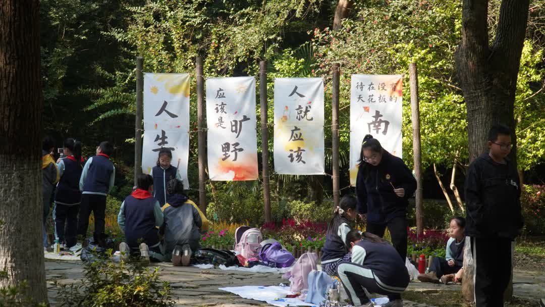 在南山招隐景区,一进入停车场,就能看到整齐排列的十几辆旅游大巴,远远地便能听到从景区深处传来的阵阵童声。工作人员告诉记者:“从10月开始,南山景区进入了秋游的旺季,今天迎来了红旗小学的孩子们,此外还有很多旅游团前来游玩,预计这个小高峰将一直持续到11月。”