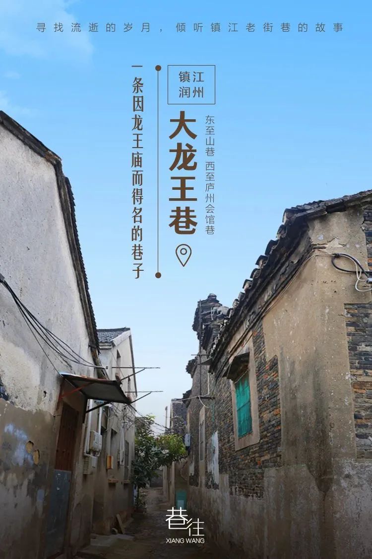 为祈求“安澜息波,消除水患”,镇江历史上常有建造龙王庙的记载。大龙王巷正因巷内建有龙王庙而得名。小巷东自山巷,西至庐州会馆巷,汇集了众多建于清末民初的古朴民居,原镇江商会办公处便坐落在大龙王巷38号。