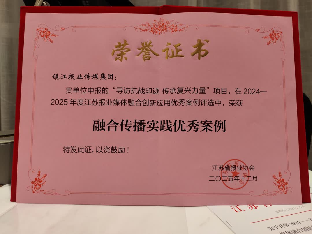 今日镇江讯(高新 马坚)12月11日,江苏省报业协会第六届理事会第五次会议在连云港召开。会上,镇江报业传媒集团申报的“寻访抗战印迹 传承复兴力量”项目,在2024-2025年度江苏报业媒体融合创新应用优秀案例评选中,获评“融合传播实践优秀案例”,其在媒体融合领域的创新探索与实践成效,得到业界广泛认可与高度评价。