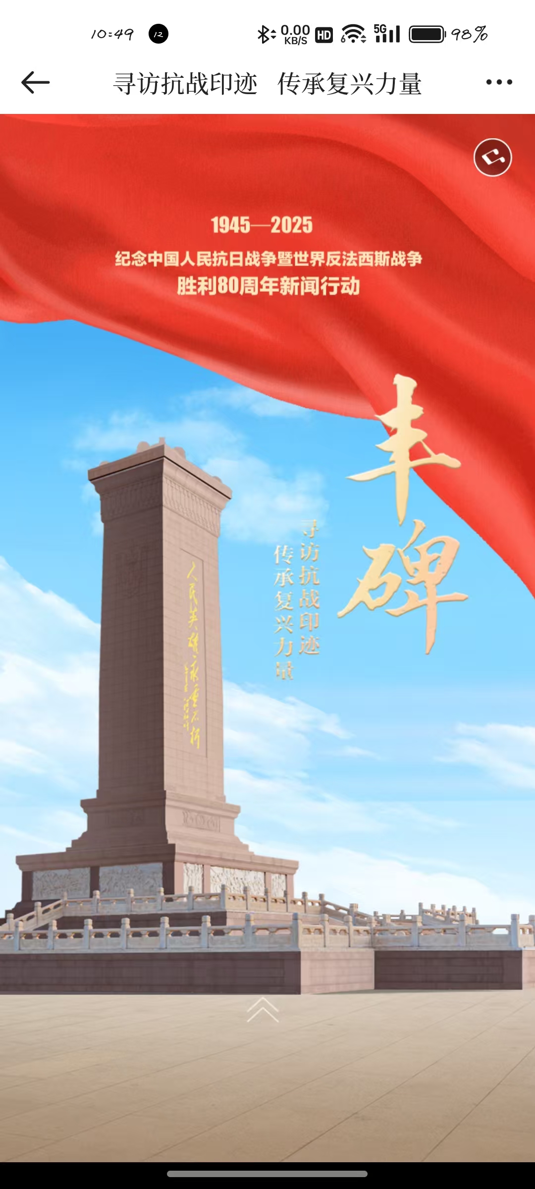 各家媒体以报纸版面为基础,同步推出短视频、H5、海报等融媒体产品,通过网站、客户端、微博、微信、抖音等多平台分发,开设相关话题,搭建“话题矩阵+内容梯次”传播链路。由镇报集团统一制作的H5互动地图,方便用户查阅88家媒体采集的抗战图文史料、视频及照片,沉浸式完成“精神远征”。行动同步发起“给1937年先辈的信”主题征文等活动,吸引大量青少年参与。据统计,此次新闻行动累计推出超 100个专题版面,全网阅读量超1.2亿次。