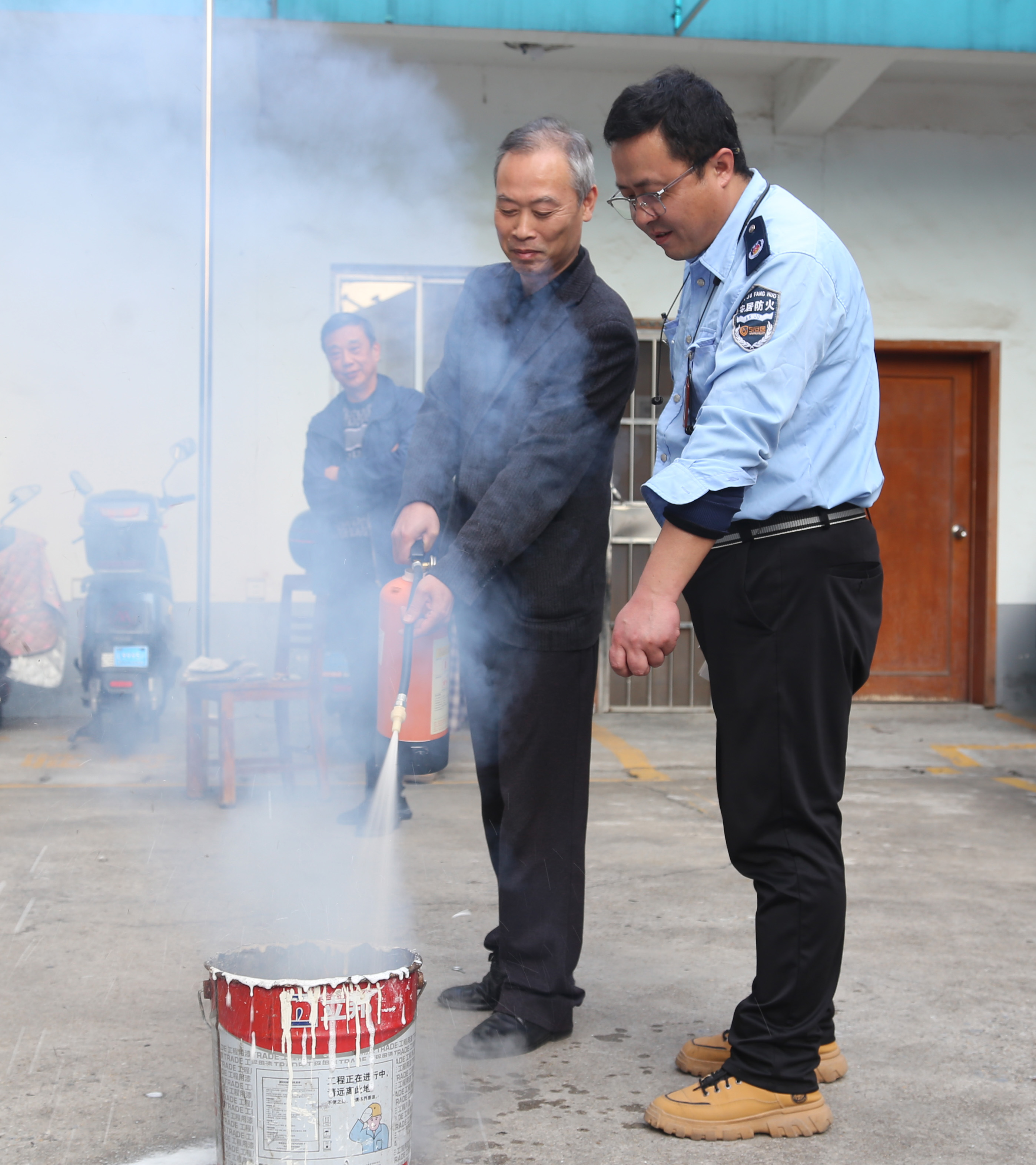 讲座结束后,刘教员采用“手把手教学+现场示范演练”的方式,在户外场地指导参与者掌握灭火器材的正确使用方法。他一边操作一边耐心讲解要点,从拔掉保险销,到握住喷管对准火焰根部,再到压下把手灭火,每个环节都讲解得细致入微,并强调“动作要稳、准、快”。随后,老干部工作者在他悉心指导下,纷纷踊跃上前进行实操,在演练中掌握了灭火器材的基本操作方法。