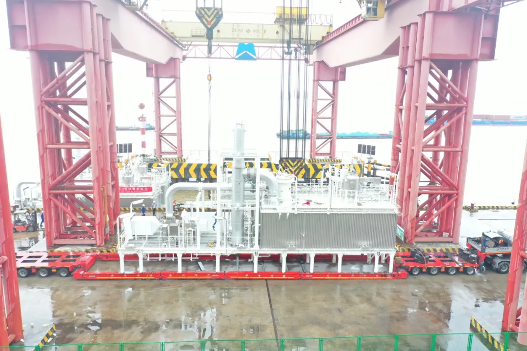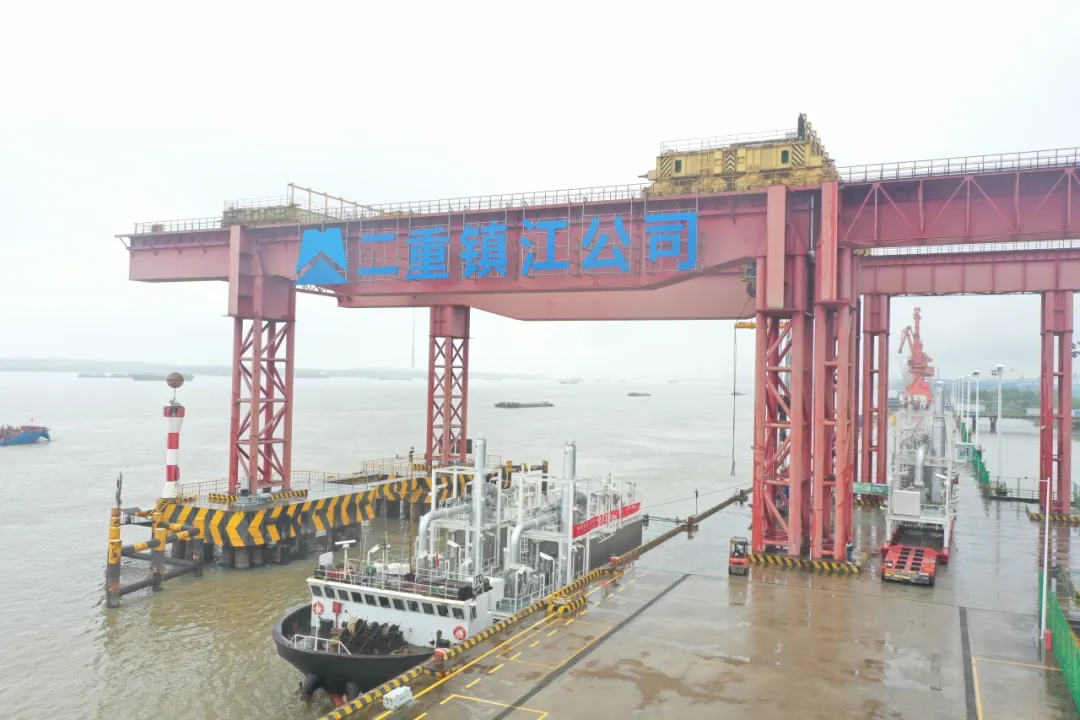 今日镇江讯(李丙权 韩雁鹏 记者 陶立波)近日,在镇江海事局的精心保障下,由二重(镇江)重型装备有限责任公司制造的3台SCV浸没燃烧式气化器撬块顺利完成吊装,由镇江启程出口海外。据悉,这批总价值超5000万元的设备将安装于危化品船舶上,是该类气化装备首次应用于船舶领域,将为绿色航运提供新技术支撑。
