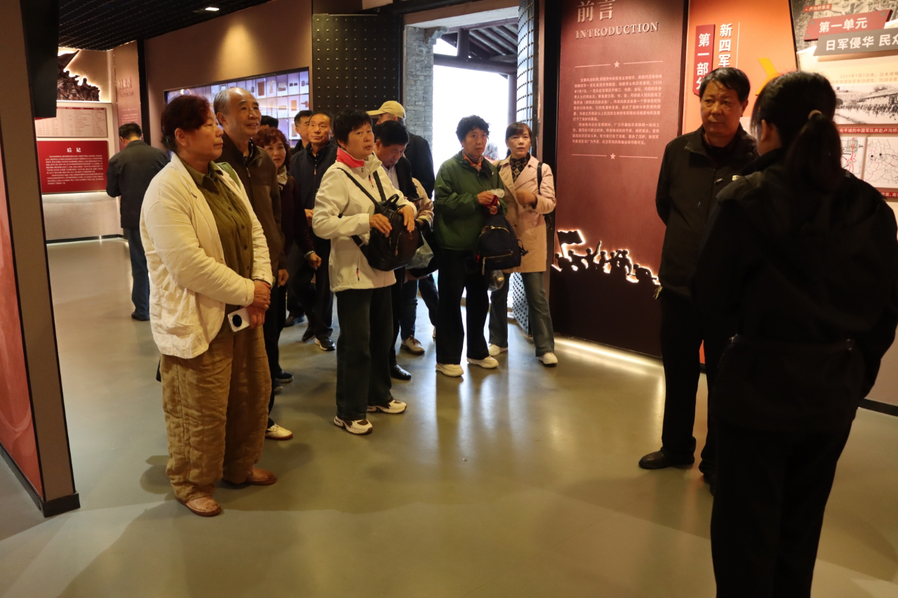 随后,队伍前往新四军四县抗敌总会纪念馆。在讲解员的引导下,志愿者们仔细观看了馆内陈列的一幅幅珍贵历史照片、文献史料和一件件革命实物,重温了陈毅同志在宝堰镇怡和酒行主持筹建镇江、句容、金坛、丹阳四县抗敌自卫委员会(即四县抗敌总会)的光辉历史。这座昔日的战斗堡垒,曾将无数战斗指令传向四方,如同刺向敌寇心脏的利刃,其历史功绩令志愿者们肃然起敬。