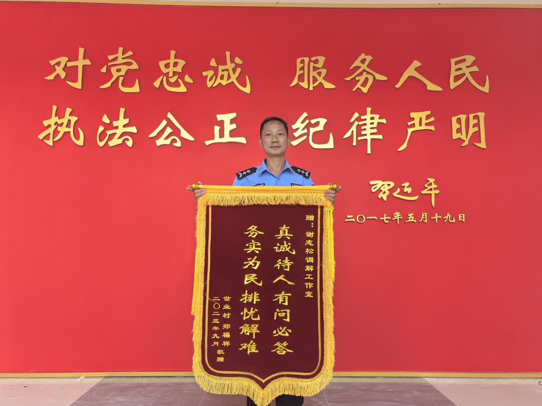扎根基层一线多年,谢志松始终践行“法理情”相统一的理念。近三年来,他成功调解各类纠纷170余起,真正做到了“小事不出村、大事不出镇”。“该打击的要依法打击,该帮扶的要真心帮扶。”这是他常挂在嘴边的话。