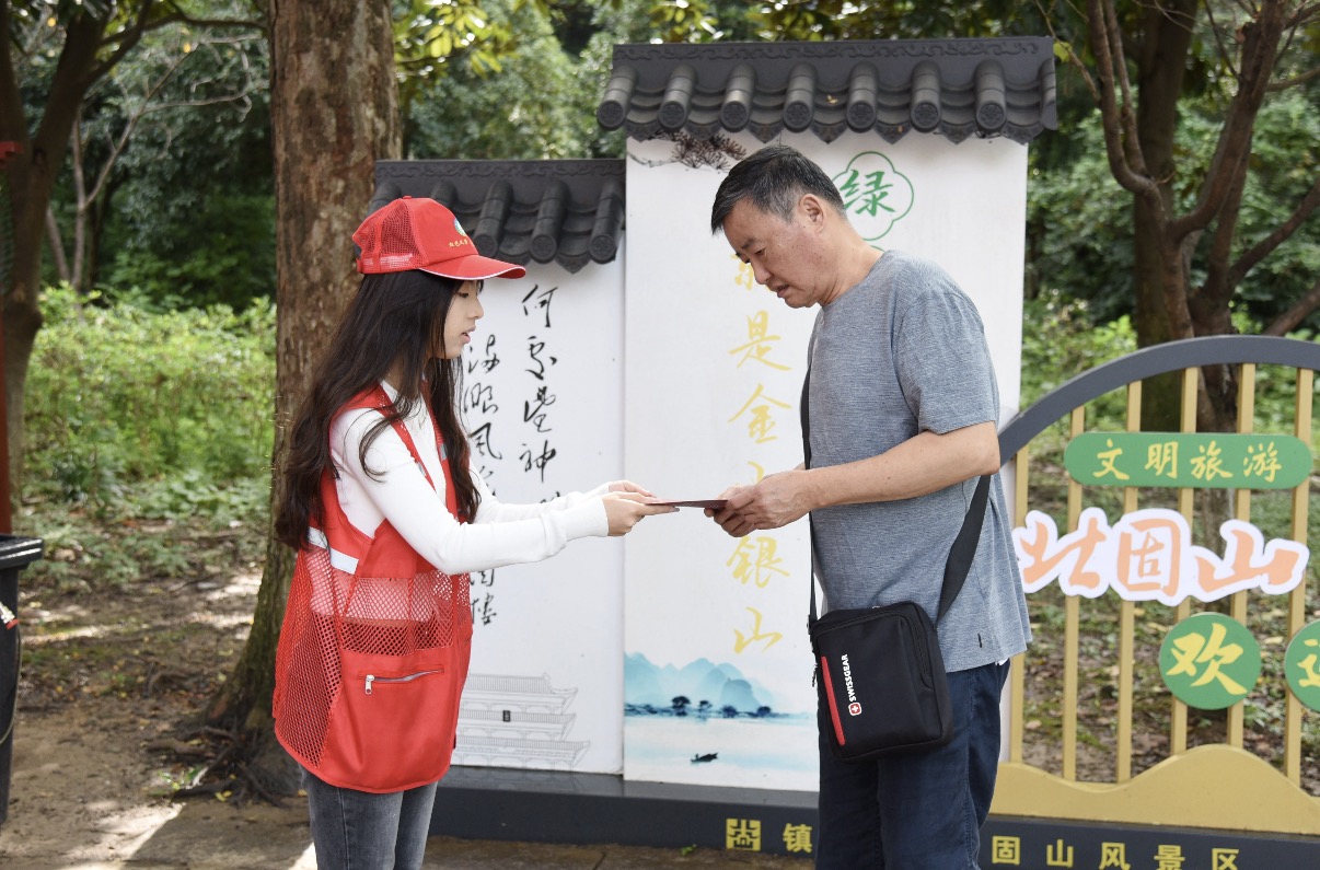 文明的力量润物无声。志愿者们用微笑与行动,为“双节”假期增添了一抹温暖底色,让节日里的镇江山水更显诗意与温情。