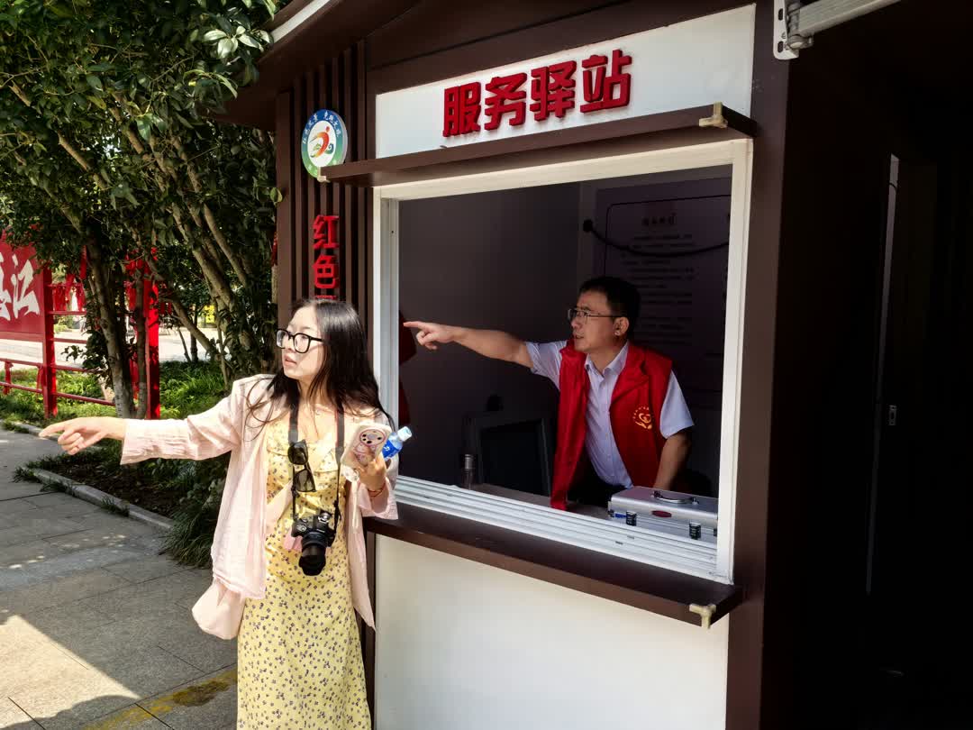 走进景区,志愿者们摇身一变成为“文明引导员”。他们手持导览图,主动为游客规划游览路线,细心告知饮水点、卫生间等便民设施的位置。遇到携带儿童或大件行李的游客,还会贴心提供临时寄存帮助,让出行体验更轻松、更舒心。